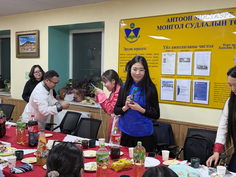 Золголтын үеэр оюутан судлаач Ц. Чулуунцэцэг "Торгоны мань хээ", Н. Бямбажаргал "Цагаан сар"дуугаар, С.Цэлмүүн "Арван хоёр жил" бүжгээр мэндчилгээ дэвшүүллээ. Мөн "Би хэн бэ?" хэмээх хөгжөөнт тоглоомыг тоглоомыг тоглолоо.