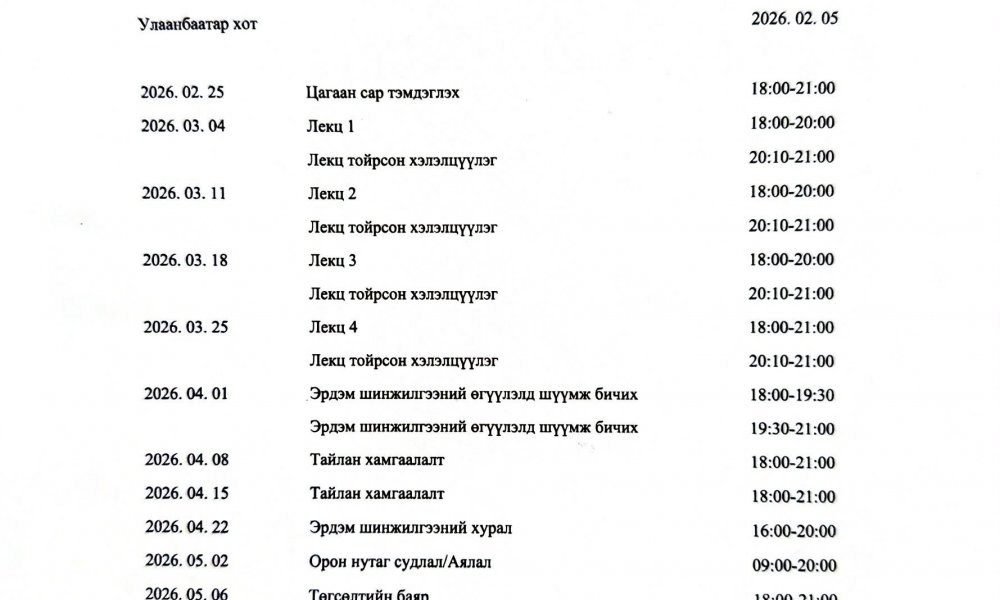 “XII зууны монголчуудын нийгмийн байгууллын судалгааны арга зүйн асуудал” сэдэвт лекц болно.