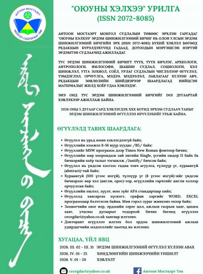 2026 ОНЫ 5 ДУГААР САРД ХЭВЛЭГДЭХ ХХX БОТИД ЭРХЭМ СУДЛААЧ ТАНЫГ ЭРДЭМ ШИНЖИЛГЭЭНИЙ ӨГҮҮЛЛЭЭ ИРҮҮЛЭХИЙГ УРЬЖ БАЙНА.