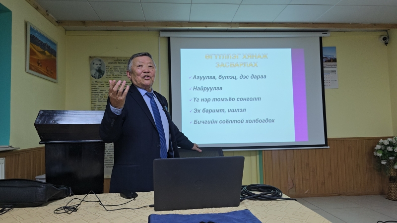 Антоон Мостаэрт Монгол Судлалын Төвөөс санаачлан зохион байгуулдаг “Оюутан судлаач” тэтгэлэгт хөтөлбөрийн 14 дэх хичээлийн жилийн I хагас жилийн лекц-ярилцлага 2025 оны 11 сарын 20-ны лхагва гаргийн 18:00-20:03 минутын хооронд АМТ-д амжилттай боллоо. Лекц-ярилцлагын зочноор монгол улсын ардын багш, шинжлэх ухааны доктор (Sc.D), профессор, МУБИС-ийн Монгол судлалын төвийн зөвлөх профессор Ц. Өнөрбаян уригдаж, "ЭРДЭМ ШИНЖИЛГЭЭНИЙ ӨГҮҮЛЭЛ БИЧИХ АРГАЧЛАЛ" сэдвээр лекц уншлаа.