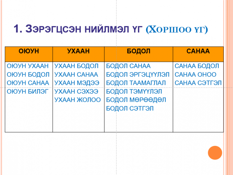 - Хүснэгт, зураг, загвар ... гэх мэт.