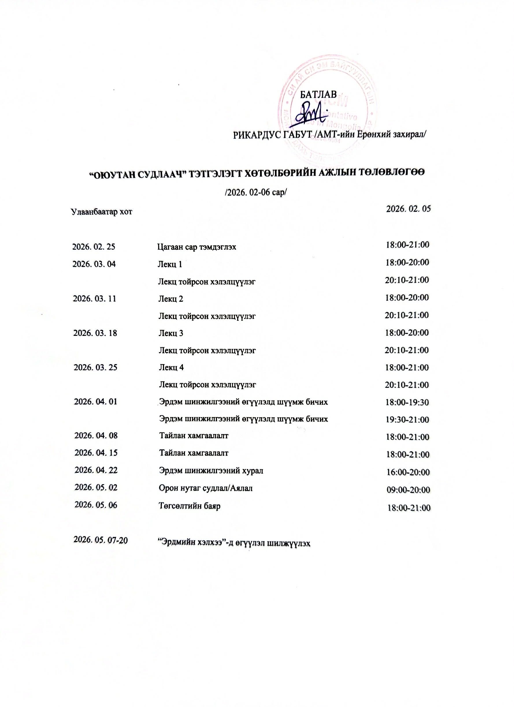 “Оюутан судлаач” тэтгэлэгт хөтөлбөр нь 2011-2012 оны хичээлийн жилээс эхэлсэн бөгөөд нэг хичээлийн жилийн турш лхагва гараг бүр 18:00-21:00 цагийн хооронд тогтмол үйл ажиллагааг явуулсаар ирсэн байна.