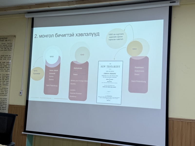 Антоон Мостаэрт Монгол Судлалын Төвөөс санаачлан, “Оюутан судлаач” тэтгэлэгт хөтөлбөрийн хүрээнд зохион байгуулдаг лекц-ярилцлагын 131 дэх дугаар 2026 оны 3 сарын 18-ны лхагва гаргийн 18:00-20:00 минутын хооронд АМТ-д амжилттай боллоо. Тус лекц-ярилцлагын зочноор Унгар улсын Сегедийн их сургуулийн хэл шинжлэлийн докторант, МУИС-ийн зочин судлаач Sara Tiszai уригдаж, “ХАЛИМАГ ХЭЛЭЭРХ АНХНЫ МОНГОЛ БИБЛИ” сэдвээр лекц уншлаа.