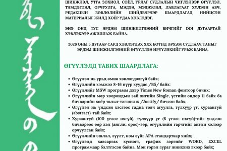 2026 ОНЫ 5 ДУГААР САРД ХЭВЛЭГДЭХ ХХX БОТИД ЭРХЭМ СУДЛААЧ ТАНЫГ ЭРДЭМ ШИНЖИЛГЭЭНИЙ ӨГҮҮЛЛЭЭ ИРҮҮЛЭХИЙГ УРЬЖ БАЙНА.